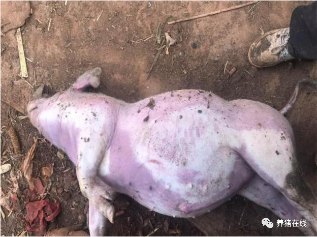 ② 魏氏梭菌:魏氏梭菌病没有任何征兆突然死亡,腹部极度臌胀,耳尖,蹄部,鼻唇部发绀,病程极短,死后猪皮肤苍白。