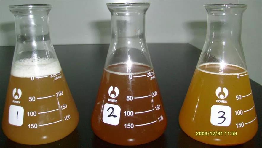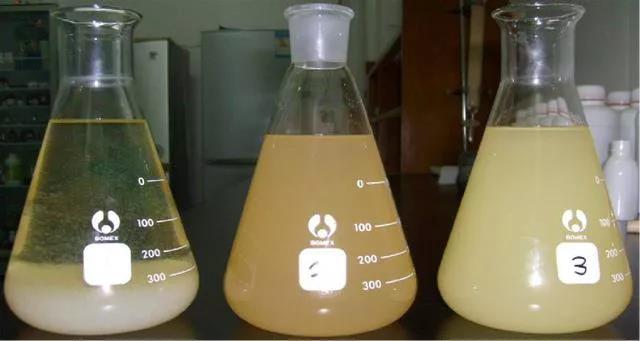 4、酒精醇沉:黄芪多糖在80%的酒精中能够析出,断链和提取不完整黄芪多糖会有絮状沉淀和浑浊出现。