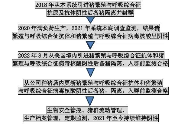该场采取了封群管理、实验室监测、强化药物保健、生物安全管控、生产档案管理等技术措施,分阶段推进PRRS净化工作,具体见图1。