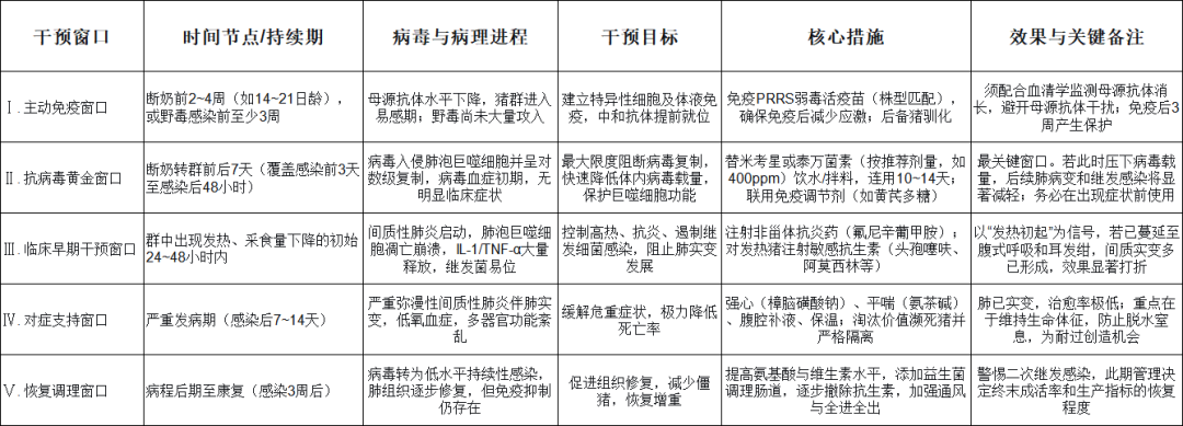 蓝耳病毒的感染动力学为精准干预提供了明确的时间坐标:感染后12~24小时出现病毒血症,48小时内病毒在肺泡巨噬细胞内呈对数级扩增,第3天启动间质性肺炎,第7~10天大体病变达峰值。据此可划分以下不可错过的干预窗口。