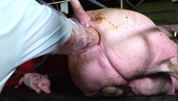 掏猪的动作一定要轻,保护好母猪的产道,以免发生水肿、刮伤。遇到骨盆口非常狭窄的母猪,有条件、技术的猪场(没有把握,直接淘汰),可以选择剖腹产,等仔猪断奶后,再淘汰母猪。