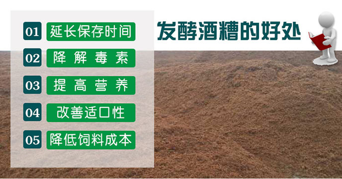 酒糟一般都含有酒精毒素,在农富康饲料发酵剂发酵后酒糟得到分解,有害菌被降解而脱除,从而大大的增加了酒糟饲料的安全性。