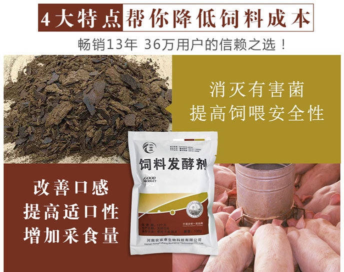 农富康饲料发酵剂是一种高活性益生菌发酵剂,富含多种益生菌群以及生物酶,能迅速吞噬杂菌有害菌,并抑制其再生;另外大量益生菌可以分解残渣营养,所以发酵后的粗饲料适口性更好。还可以提高饲料利用率,节省成本。长期使用农富康饲料发酵剂发酵后的粗饲料,能大幅度的降低养猪饲料成本。对于养殖业来讲省钱就等于赚钱!!!