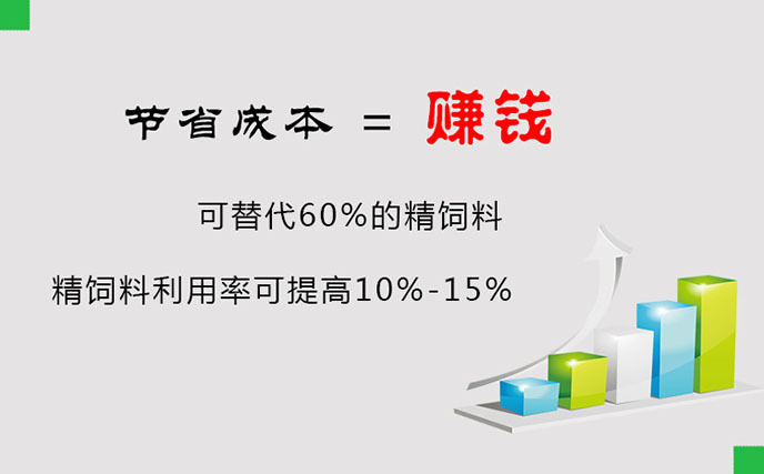 粗饲料发酵后,可以代替很大一部分猪饲料,把饲料成本节省了,并且猪少得病,出栏提前,经济效益得到提高。