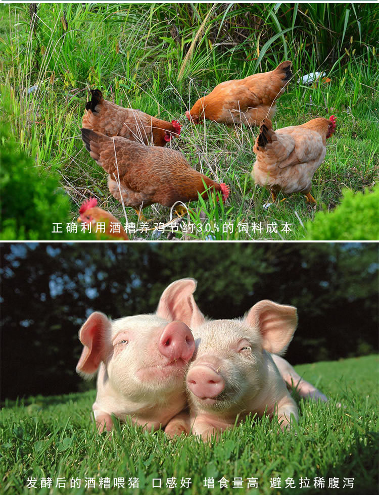 酒糟是酿酒过程中的直接下脚料,它不仅含有一定比例的粮食可以节省喂牛或者其他动物的精料,它还含有丰富的粗蛋白,约高出玉米含量的2—3倍,同时还含有多种微量元素、维生素、酵母菌等,赖氨酸、蛋氨酸和色氨酸的含量也很高,这是农作物秸秆所不能提供的。酒糟,粗蛋白含量可达到25%左右,将其当做牛或其他动物的饲料是一个很好的选择。但是,直接用酒糟喂牛或其他动物不但营养价值得不到充分利用,而且口感还差所以最好用发酵剂