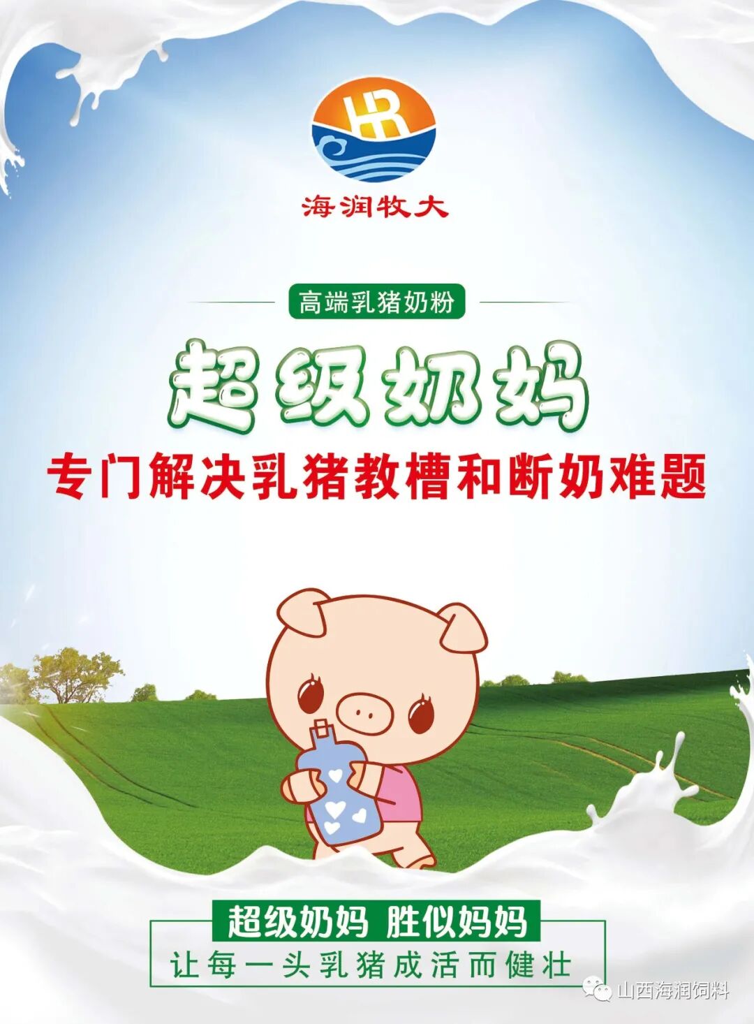 海润牧大推出了“超级奶妈”高端乳猪奶粉。专门针对断奶日龄早、母猪奶水少,断奶后乳猪不吃或者吃的少的弱猪,早期抓猪育肥的小猪。从源头抓起,有效解决养殖过程中的上述烦恼。