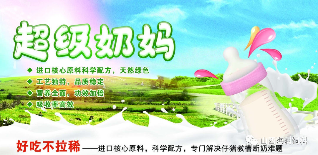 为保障乳猪顺利断奶,减少病弱僵猪,让每头乳猪健康成长!海润集团结合当前饲料“禁抗”的行业背景,引进国外针对乳猪教槽、断奶应激和抗病脱僵等成熟方案及配方,进口优势原料,开发生产出奶粉教槽料——超级奶妈。